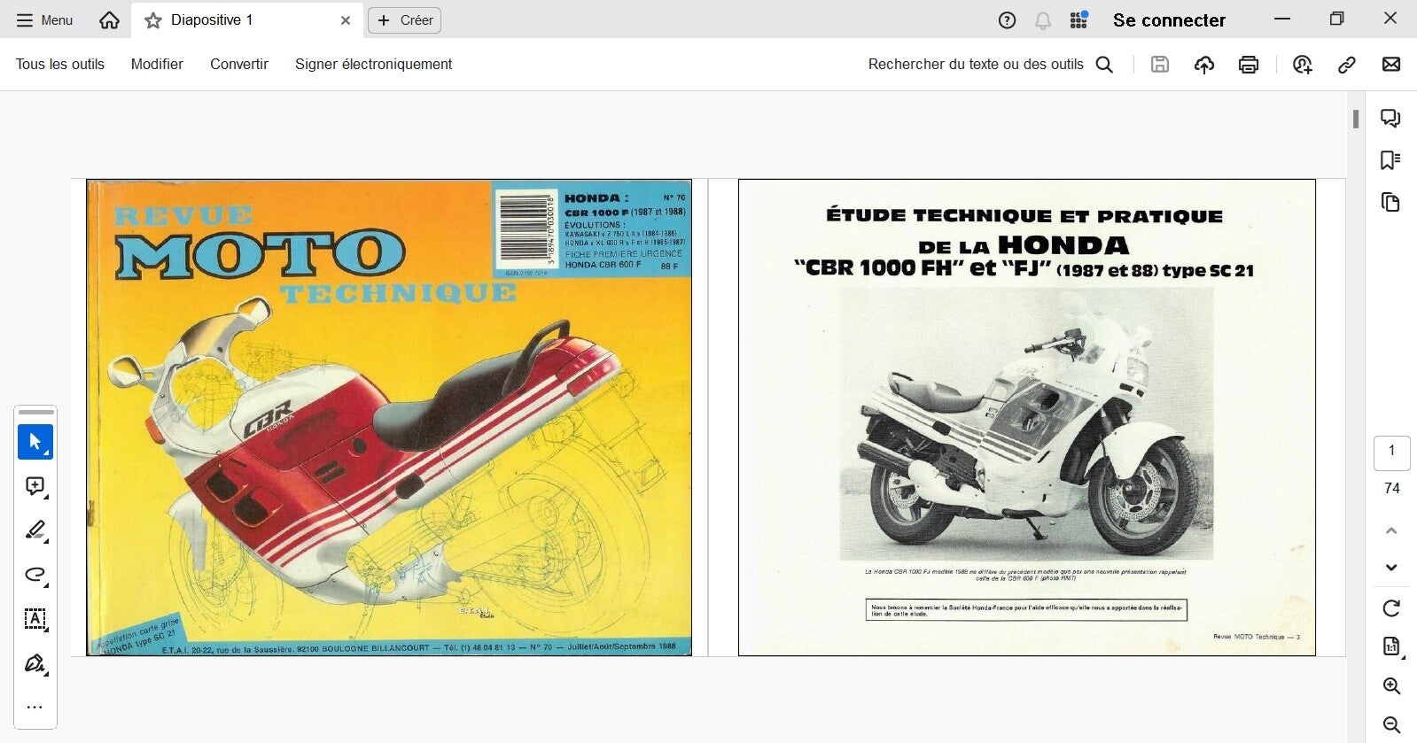 Revue moto technique 70 Honda CBR 1000 F (attention en pdf-version ordinateur)