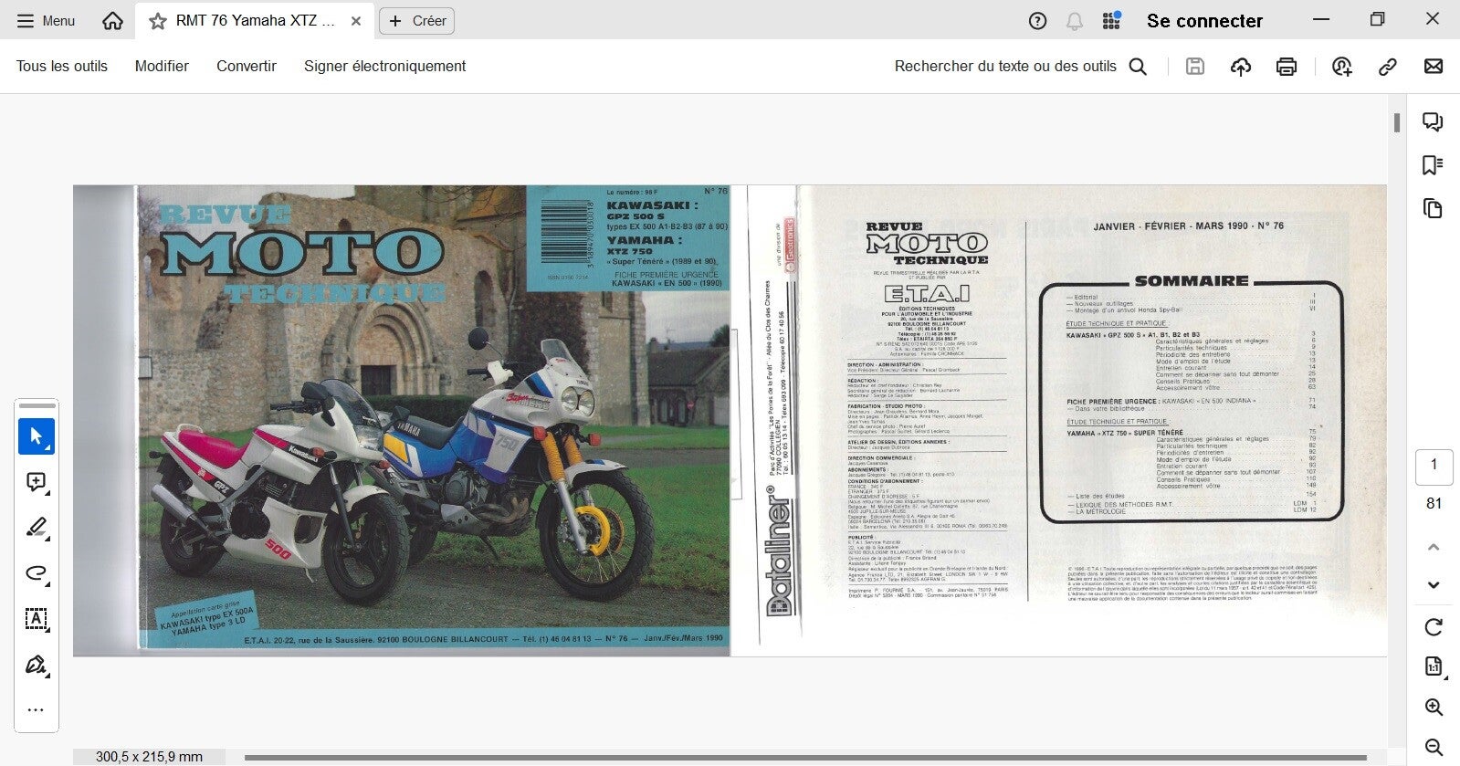 Revue moto technique 76 Kawasaki GPZ 500 S (attention en pdf-version ordinateur)