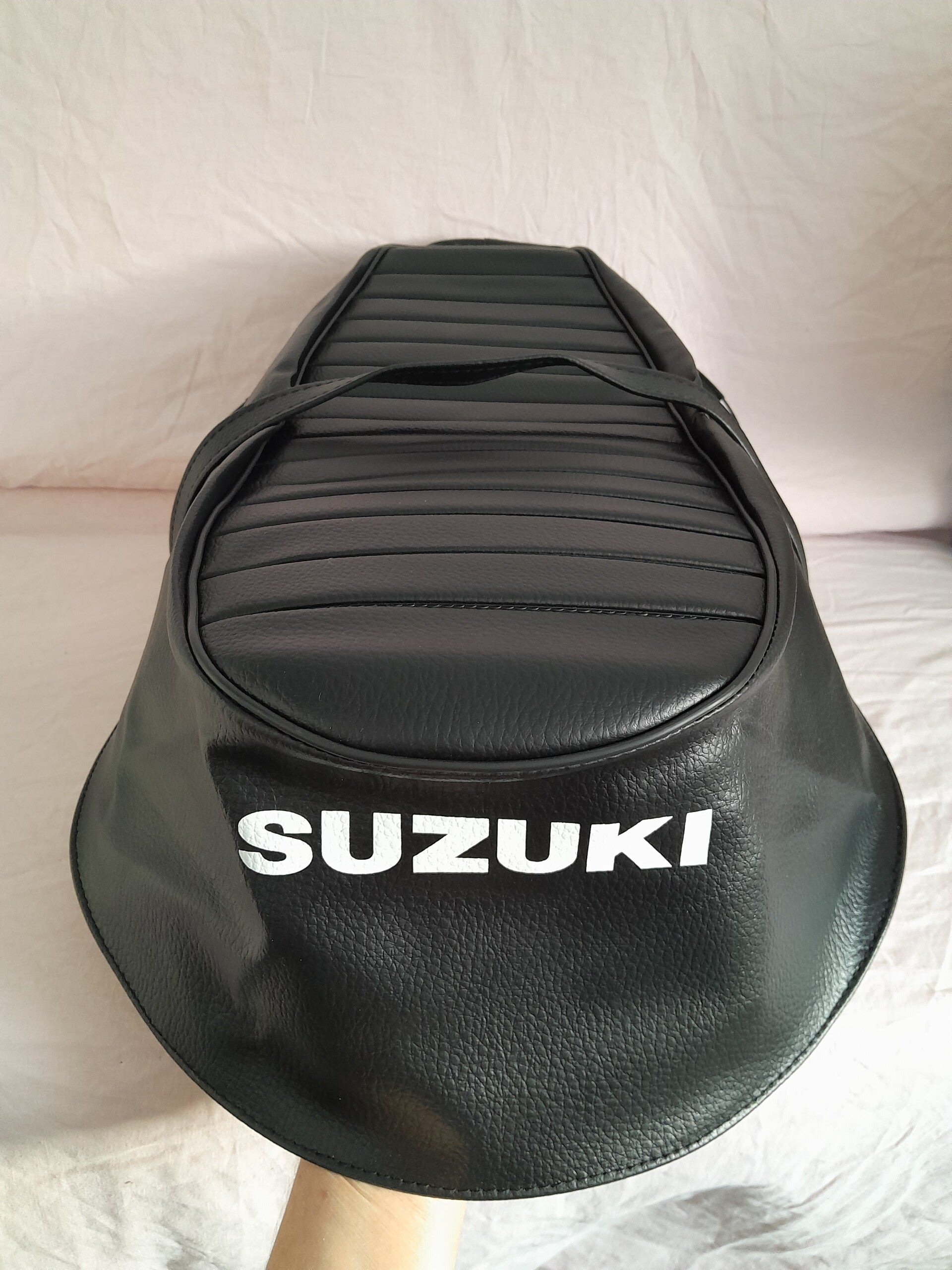 Housse de selle neuve adaptable de bonne qualité avec logo à l'arrière et sangle pour SUZUKI T 500 R J K L M
