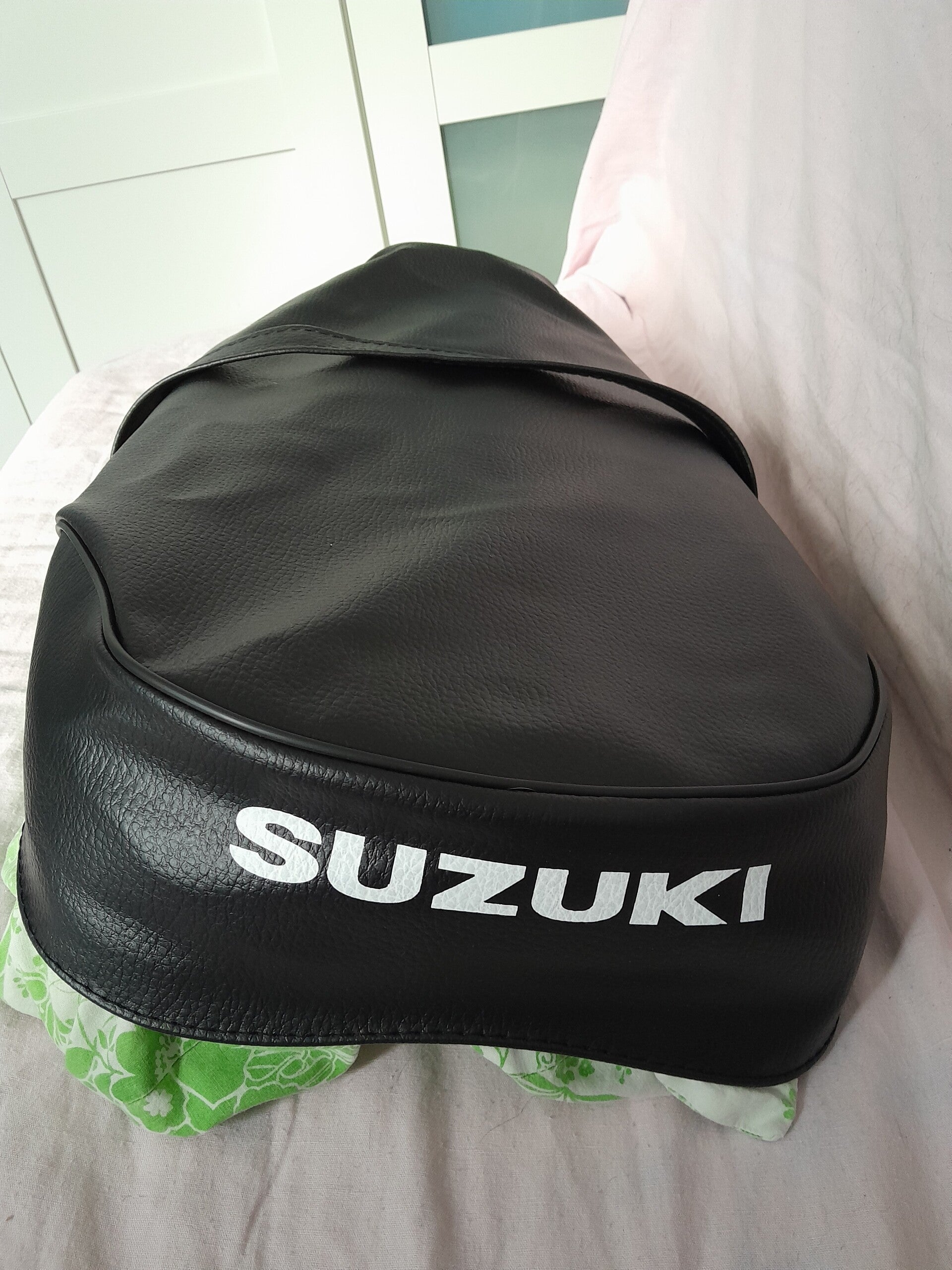 Housse de selle neuve adaptable de bonne qualité avec logo à l'arrière et sangle pour Suzuki TS 250 TS 400 R/J 1971-72